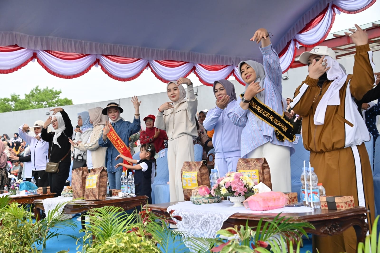 Bunda PAUD Provinsi Kalteng Aisyah Thisia Agustiar Sabran menghadiri Peringatan HUT Ke-20 HIMPAUDI Tahun 2025 di Bundaran Besar Palangka Raya, Minggu (24/08/2025).