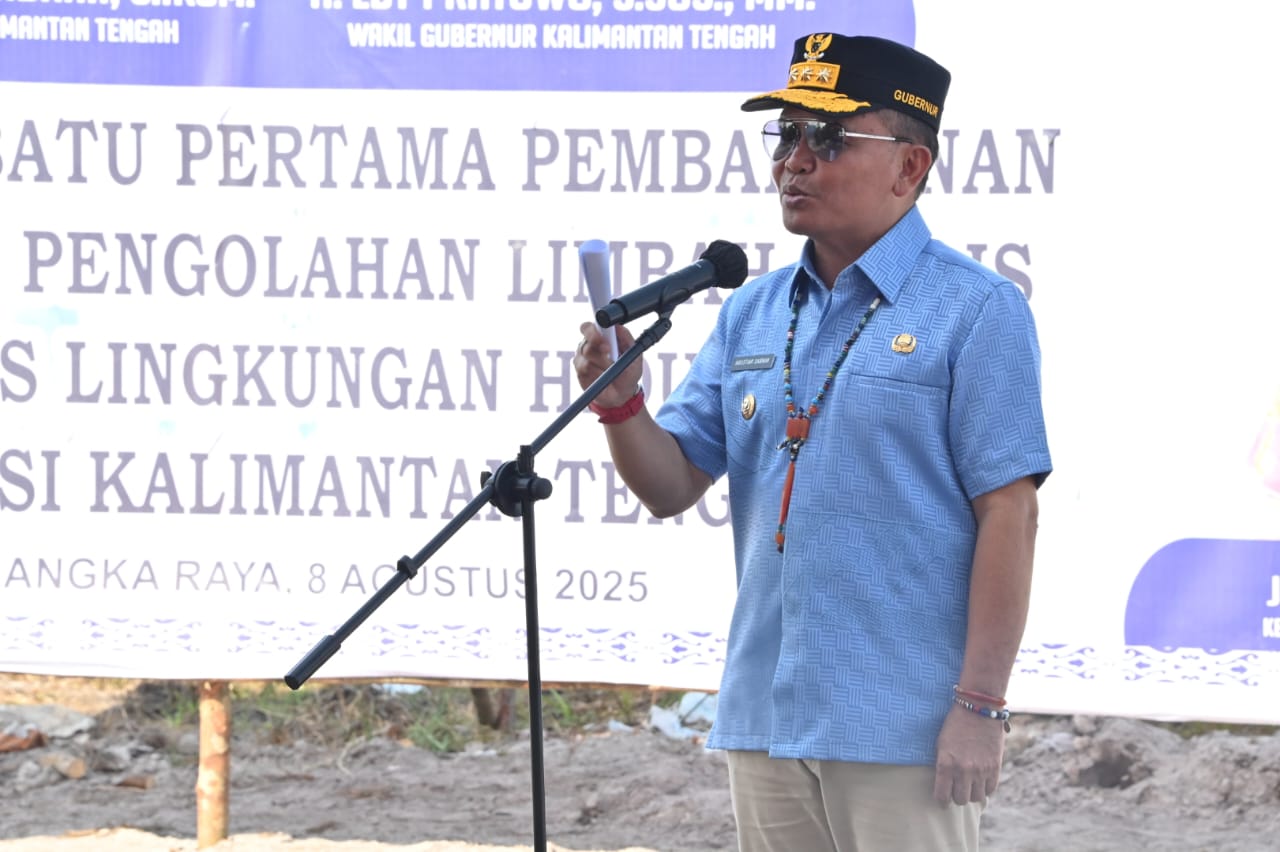Gubernur Agustiar Sabran melakukan Peletakan Batu Pertama Pembangunan Kantor UPT Pengolahan Limbah Medis DLH Provinsi Kalteng di Jalan Tjilik Riwut Km. 15 Palangka Raya, Jumat (8/8/2025).
