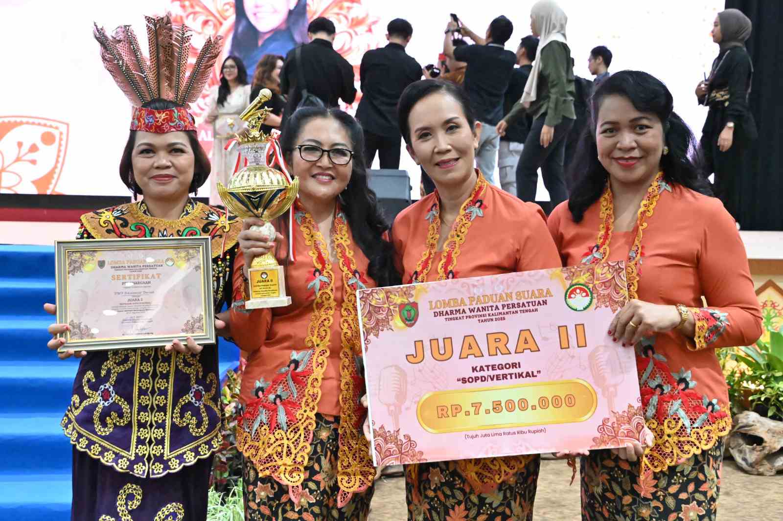 Juara Lomba Paduan Suara DWP Tahun 2025 Kategori Kabupaten/Kota, yakni Juara 1 diraih DWP Kabupaten Murung Raya, Juara 2 diraih DWP Kabupaten Sukamara, Juara 3 diraih DWP Kabupaten Katingan, Juara Favorit diraih DWP Kota Palangka Raya, serta Best Performance diraih DWP Kabupaten Barito Timur.