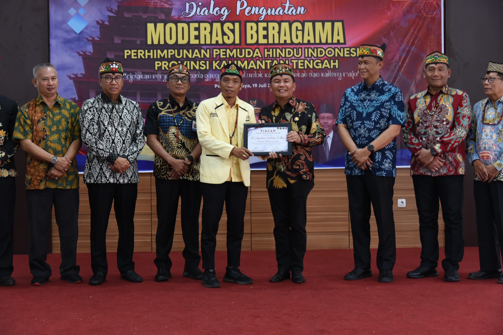 Gubernur Agustiar Sabran secara resmi membuka Dialog Penguatan Moderasi Beragama Perhimpunan Pemuda Hindu Indonesia Provinsi Kalteng Tahun 2025 di Auditorium Hindu Kaharingan Center, Jalan Tambun Bungai Palangka Raya, Sabtu (19/07/2025).