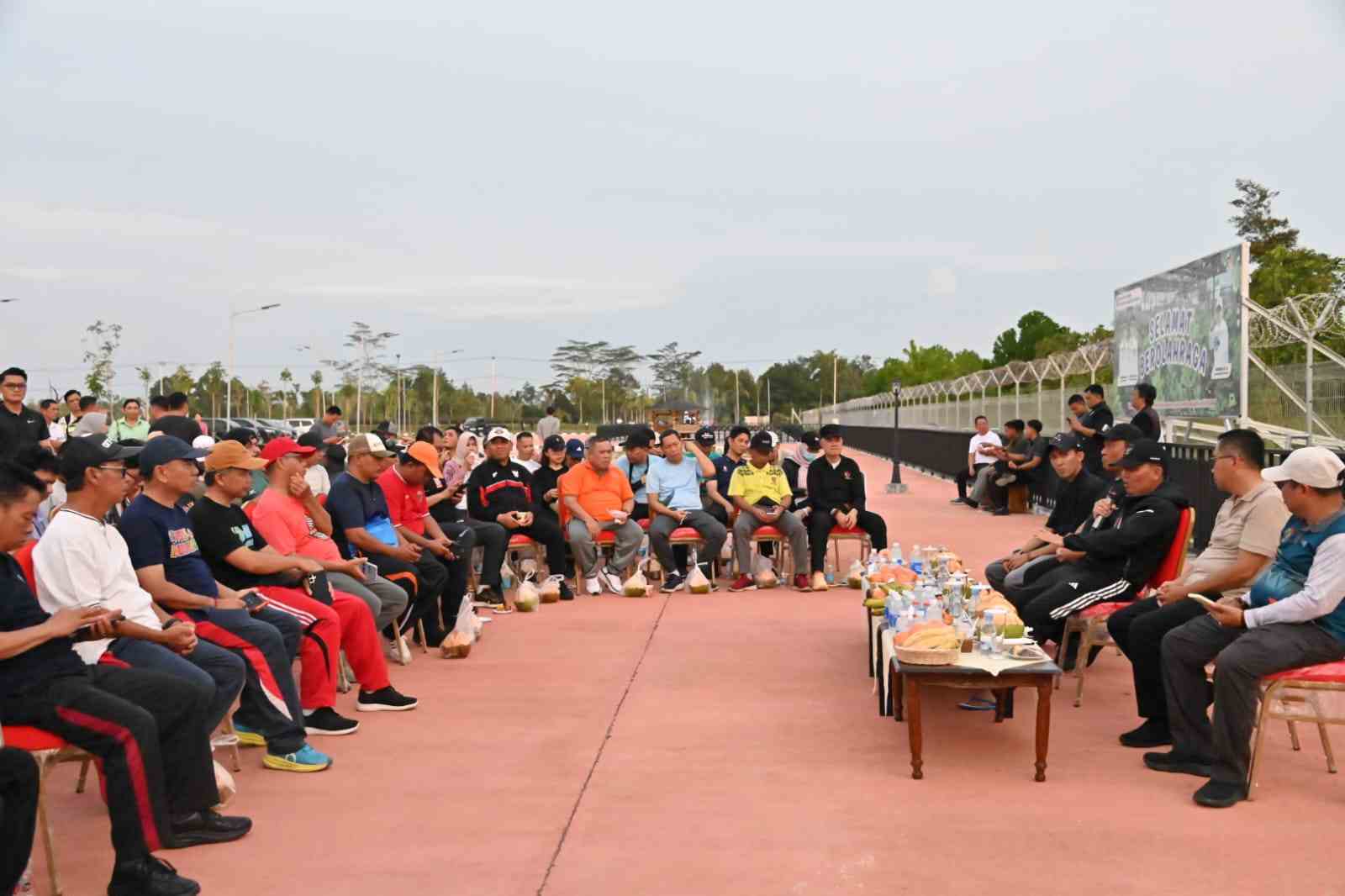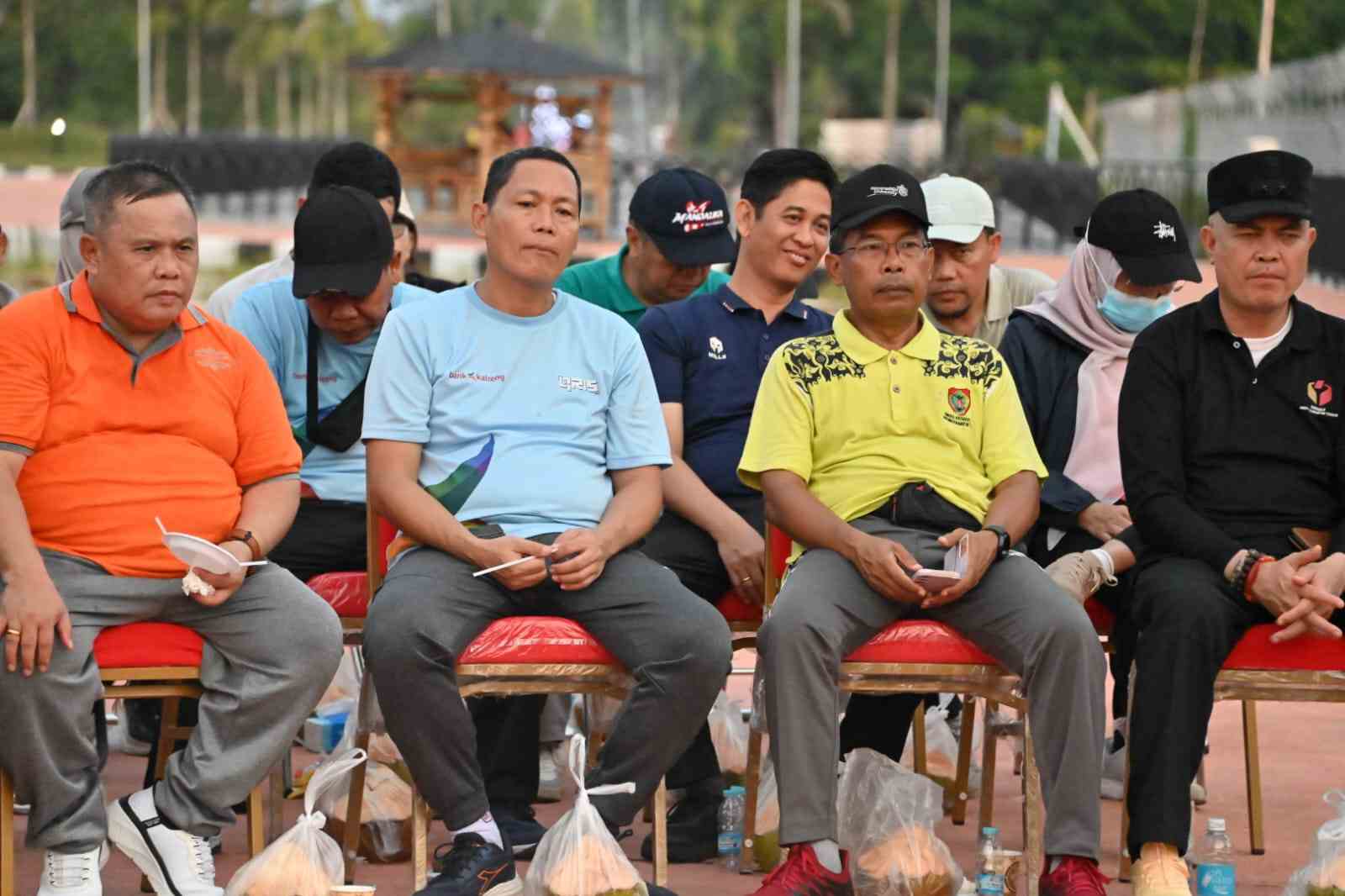 Gubernur Agustiar Sabran bersama Wagub Edy Pratowo dan Plt. Sekda Provinsi Kalteng Leonard S. Ampung melakukan olahraga bersama insan pers di kawasan Persemaian Jalan Hiu Putih, Palangka Raya, Sabtu (12/7/2025) sore.