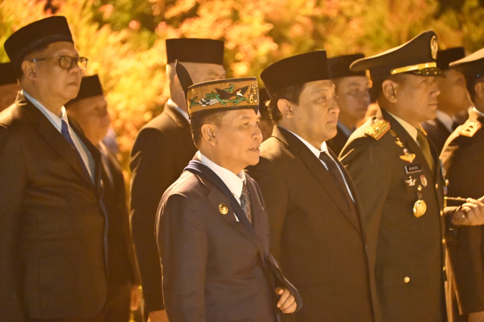 Gubernur Agustiar Sabran bersama Wakil Gubernur (Wagub) Edy Pratowo turut hadir mengikuti Apel Kehormatan dan Renungan Suci ini yang dilangsungkan di Taman Makam Pahlawan (TMP) Sanaman Lampang Palangka Raya, Minggu (17/8/2025) dini hari.
