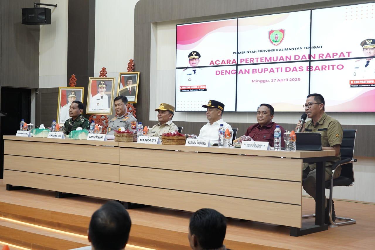 BUNTOK, BARSEL – BIRO ADPIM. Gubernur Kalimantan Tengah (Kalteng) Agustiar Sabran memimpin Rapat Koordinasi (Rakor) dengan Bupati Se-DAS Barito di Aula Kantor Dinas PUPR Kabupaten Barito Selatan (Barsel), Minggu (27/4/2025) malam.