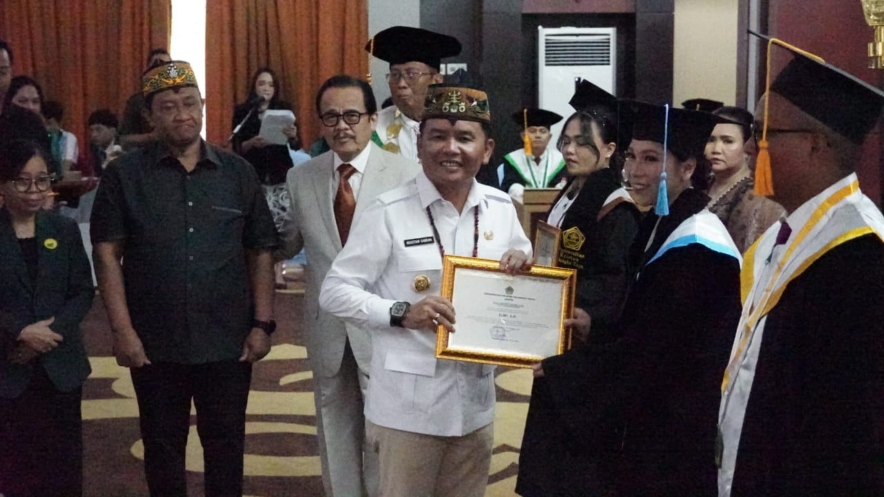 Gubernur Kalteng Agustiar Sabran dan Wagub Edy Pratowo menghadiri Sidang Senat Terbuka dan Wisuda UKPR di Aula Jayang Tingang, Lantai I Kantor Gubernur, Jumat (28/11/2025).