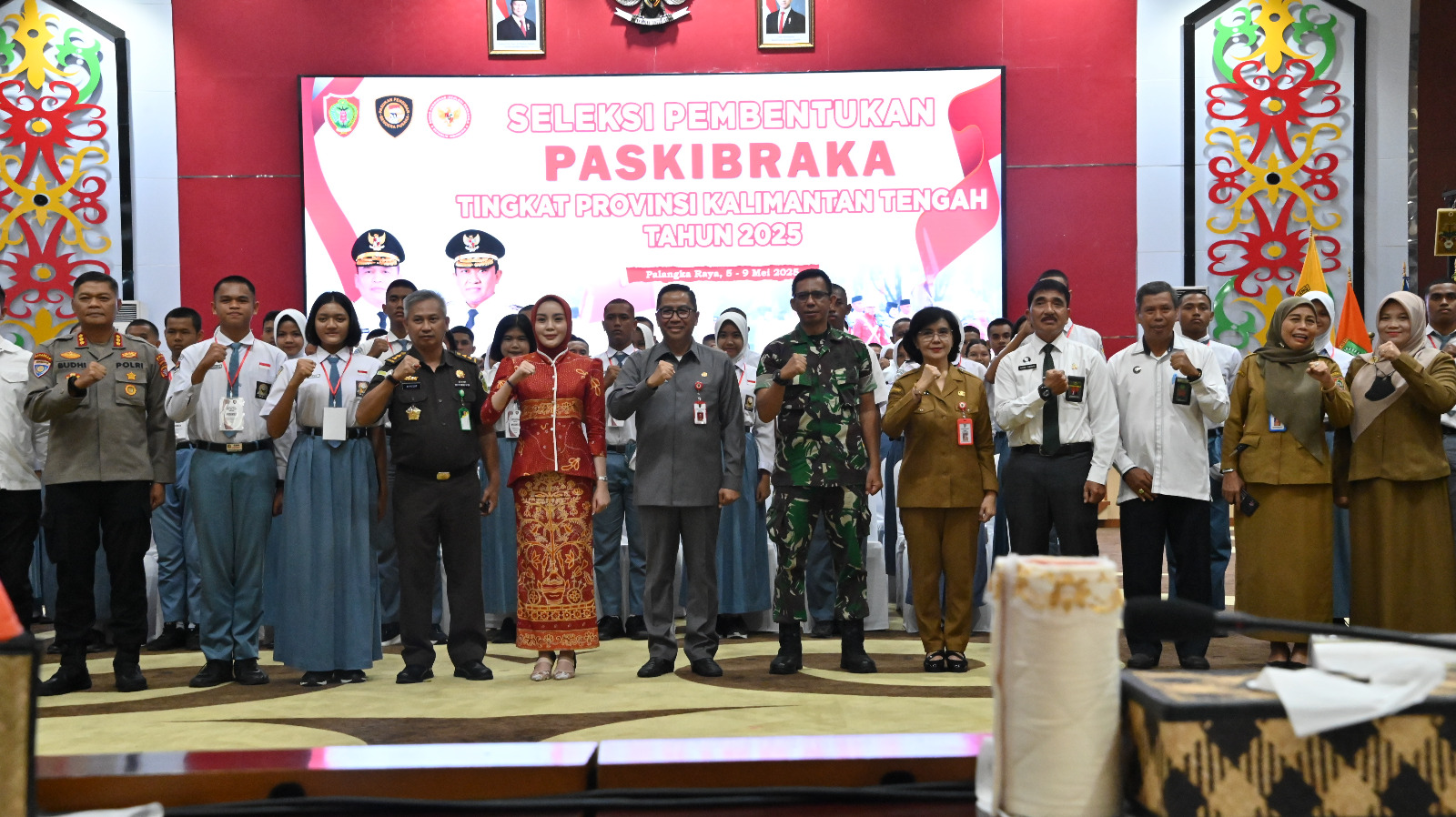 Ketua TP PKK Kalteng Aisyah Thisia Agustiar Sabran resmi membuka kegiatan Seleksi Pembentukan Paskibraka Tingkat Provinsi Kalteng Tahun 2025 di Aula Jayang Tingang, Lantai II Kantor Gubernur, Senin (5/5/2025).