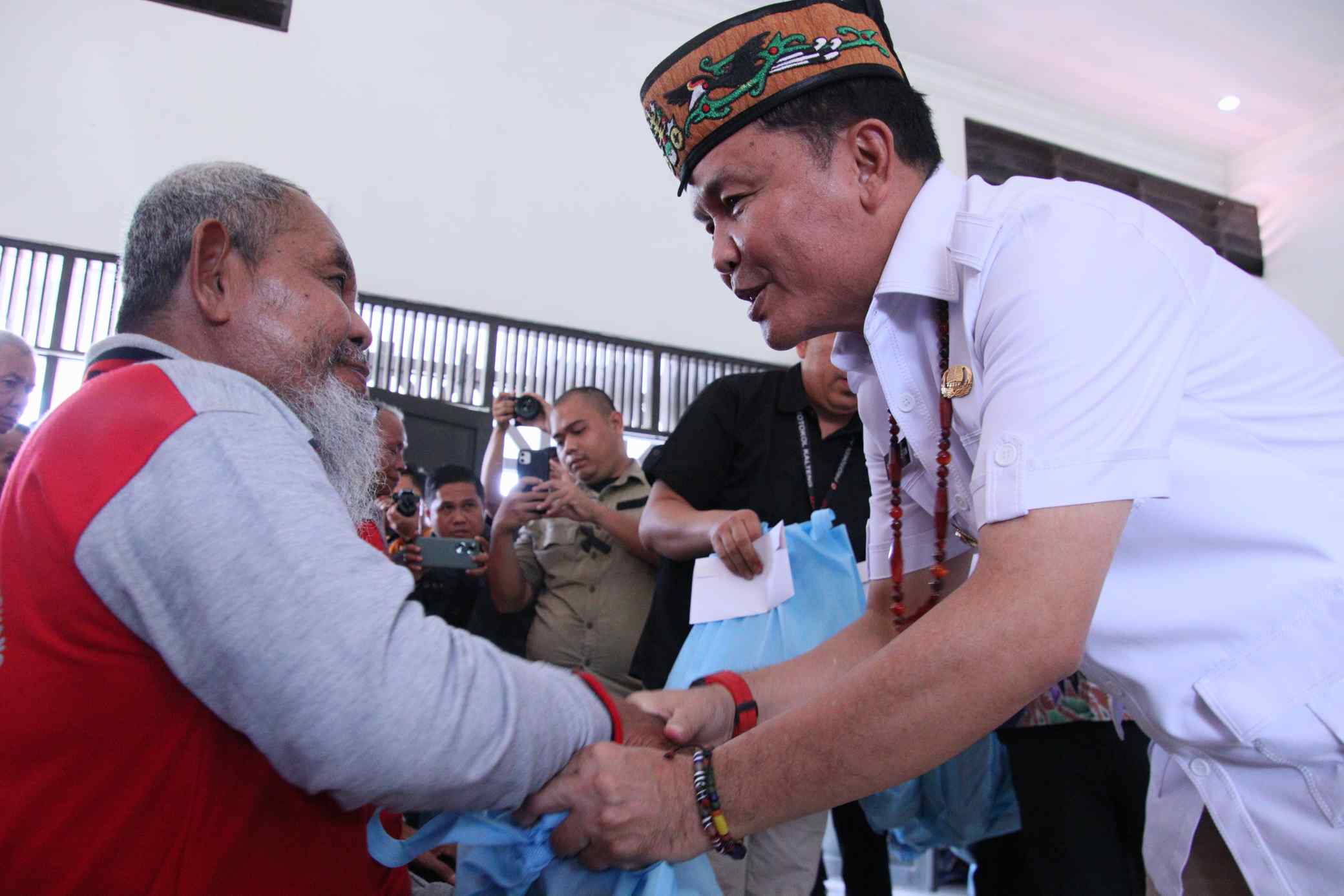 Gubernur pun menyerahkan bingkisan sebagai tanda kasih dan perhatian Pemerintah Provinsi (Pemprov) Kalteng bagi para orang tua yang menghuni Panti Werdha.