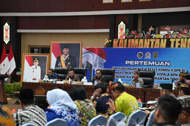 PALANGKA RAYA – BIRO ADPIM. Tim Kunjungan Kerja Reses Komisi II DPR RI melakukan pertemuan dengan Wakil Menteri (Wamen) Agraria dan Tata Ruang/Badan Pertanahan Nasional (ATR/BPN) RI dan Pemerintah Provinsi (Pemprov) Kalimantan Tengah (Kalteng) di Aula Jayang Tingang, Lantai II Kantor Gubernur, Kamis (23/4/2026). Pertemuan digelar dalam rangka Kunjungan Kerja Reses Komisi II DPR RI Masa Persidangan IV Tahun Sidang 2025-2026.