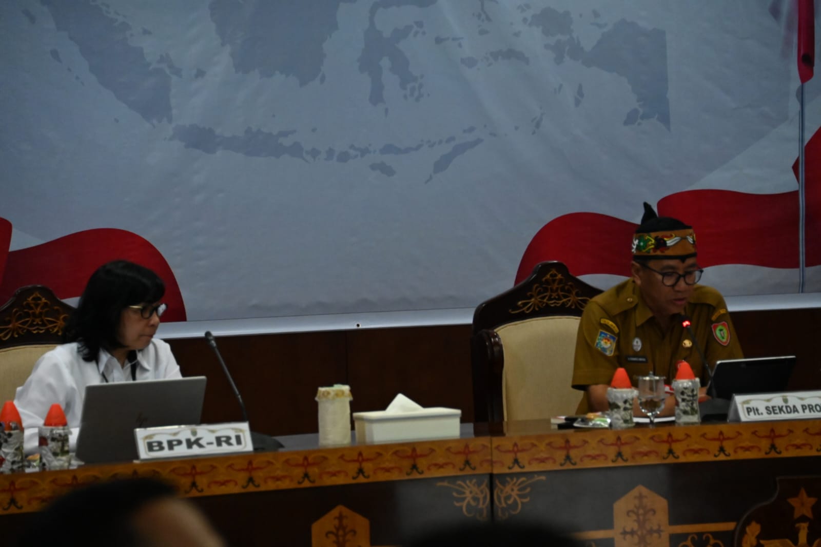 Plt. Sekda Provinsi Kalteng Leonard S. Ampung menghadiri Entry Meeting Uji Petik Pemeriksaan Tim BPK RI di Aula Eka Hapakat, Lantai III Kantor Gubernur, Senin (3/11/2025).