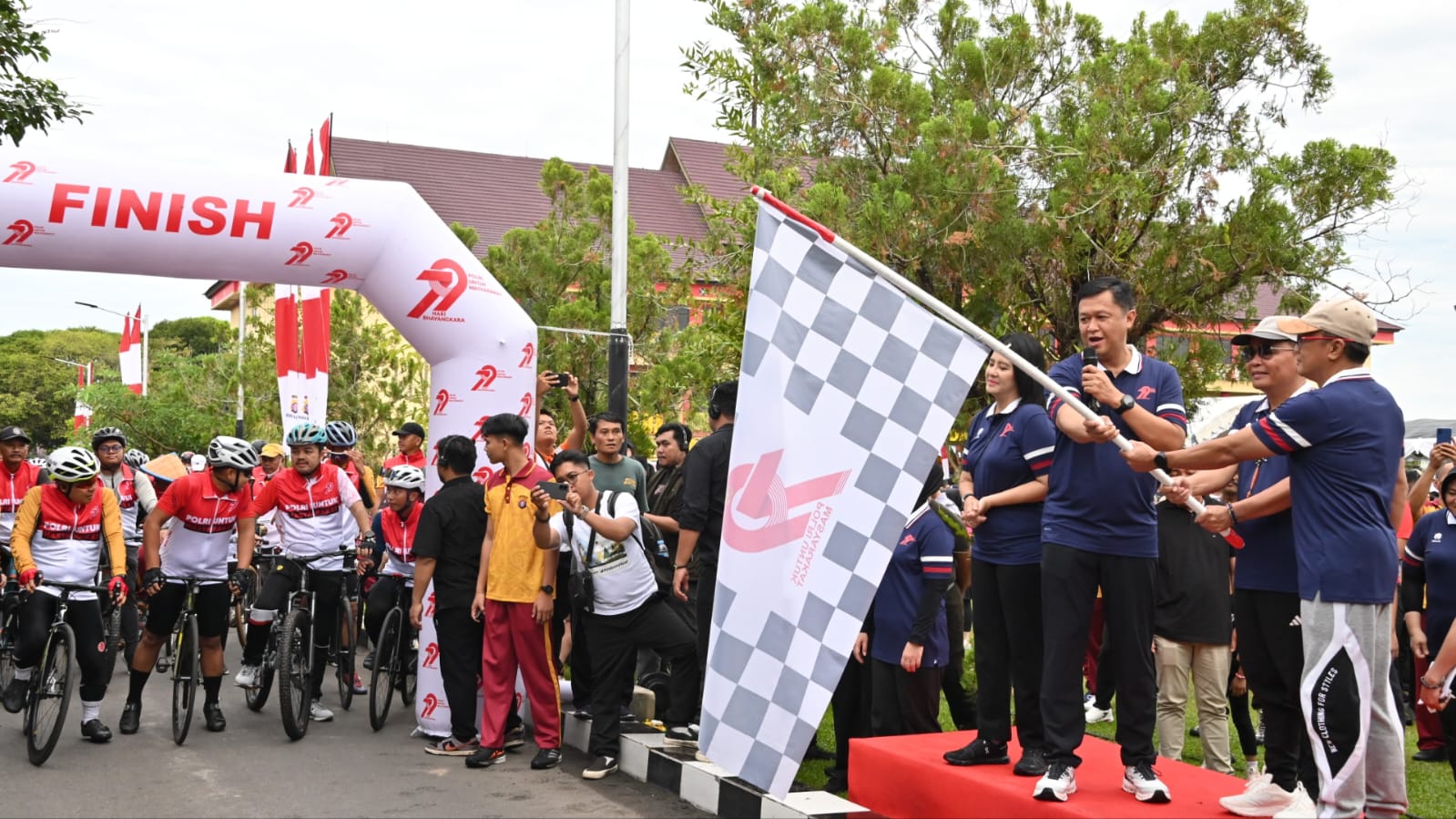 Gubernur Kalteng Agustiar Sabran hadir dan mengikuti kegiatan Jalan Sehat yang dirangkai dengan Sepeda Santai dalam rangka Hari Bhayangkara Ke-79 di Lapangan Barigas Mapolda Kalteng, Sabtu (21/6/2025) pagi.
