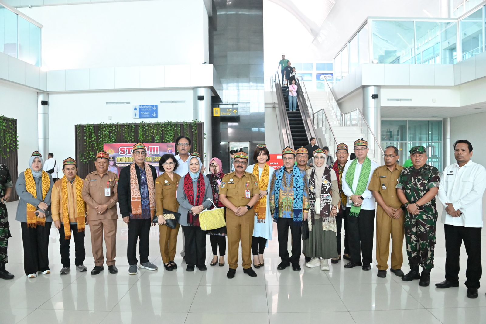 Setibanya di Terminal Kedatangan Umum Bandara Tjilik Riwut Palangka Raya, rombongan disambut dengan prosesi adat Dayak pengalungan selendang batik khas Kalteng dan pemasangan Lawung/Sumping oleh Plt. Asisten Pemkesra. Turut hadir dalam penyambutan ini, unsur Forkopimda atau yang mewakili, Pimpinan Instansi Vertikal, dan sejumlah Kepala OPD Provinsi Kalteng.