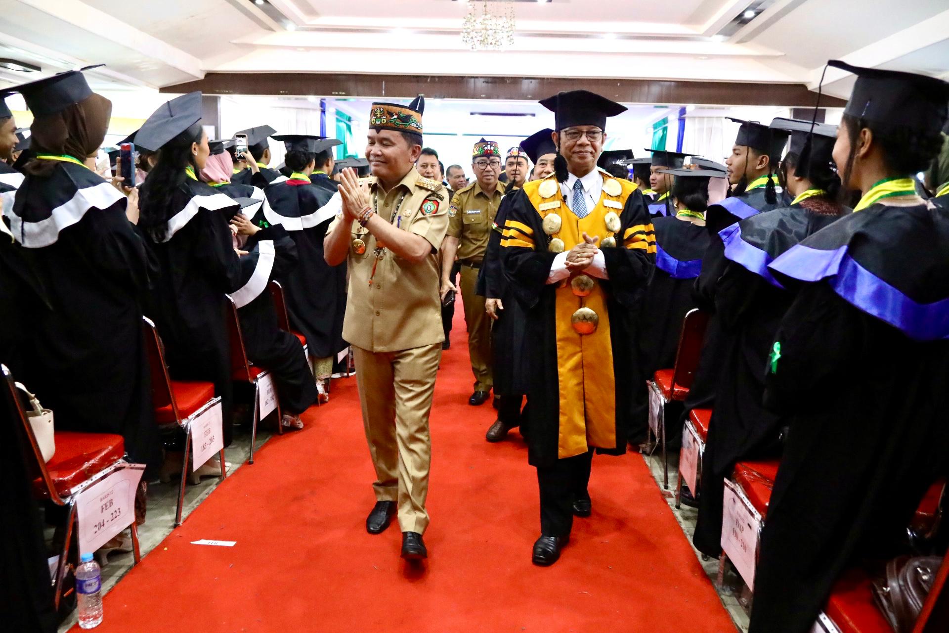 Sejalan dengan pesan tersebut, Rektor UPR dalam pidatonya menegaskan komitmen universitas untuk terus mendampingi pemerintah dalam meningkatkan kualitas SDM daerah. Ia menyebut mahasiswa UPR yang berasal dari Generasi Z memiliki karakteristik berbeda, namun tetap harus dijaga agar berpegang pada nilai-nilai budaya. UPR juga berkomitmen mendukung penuh program strategis Pemprov, termasuk Program 1 Rumah 1 Sarjana serta pembangunan berbasis desa.