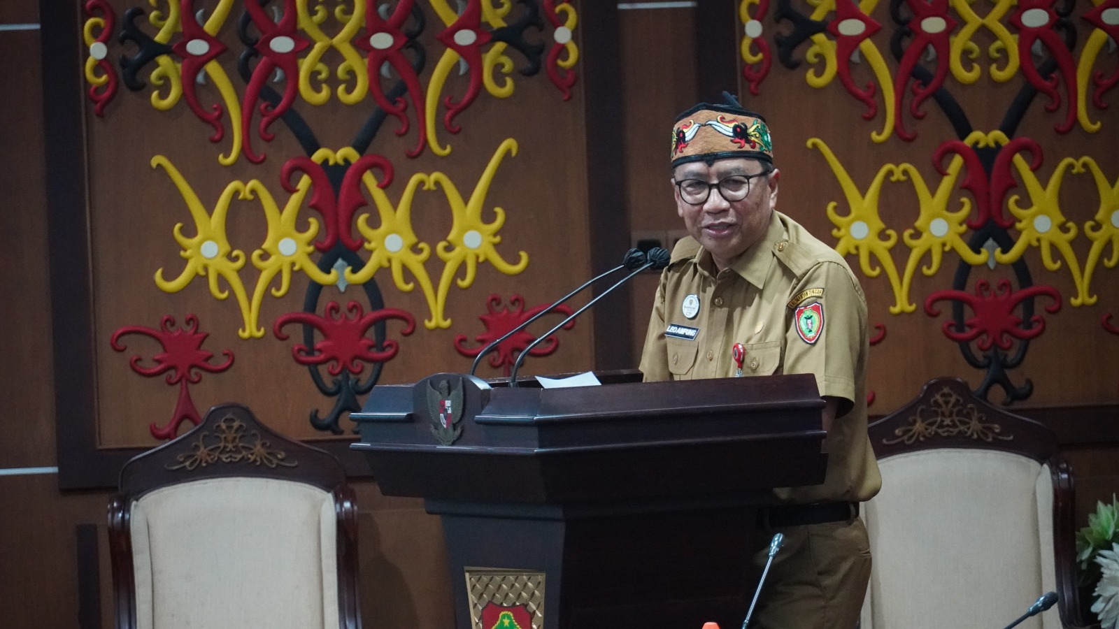 Tampak mendampingi Plt. Sekda, antara lain Asisten Perekonomian dan Pembangunan (Ekobang) Herson B. Aden serta sejumlah Kepala Organisasi Perangkat Daerah, seperti Kepala Dispenda Kalteng. (ira/ben)