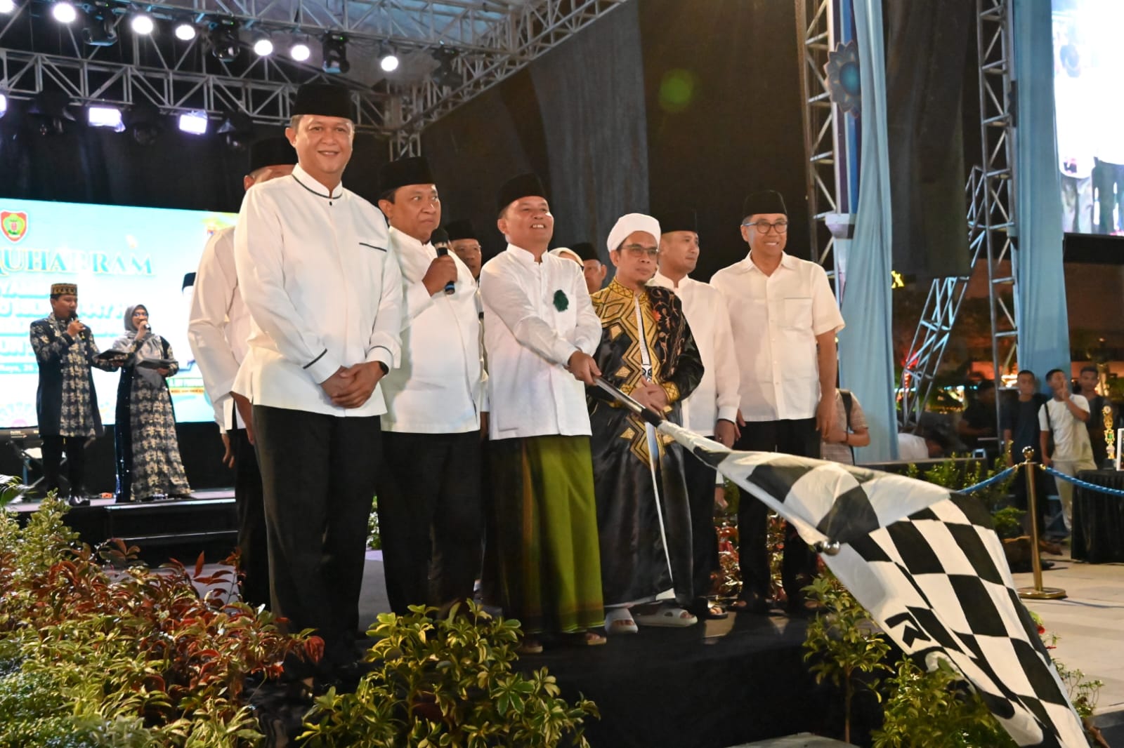 Gubernur Kalteng Agustiar Sabran melepas peserta Pawai Muharram 1447 H di Bundaran Besar Palangka Raya, Kamis (26/6/2025) malam.
