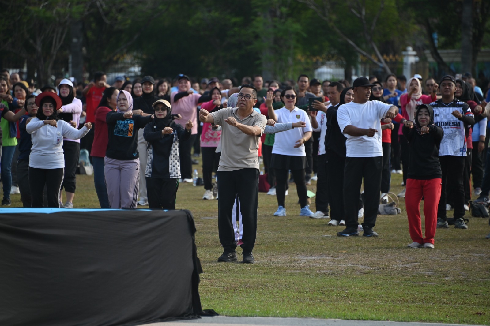 Plt. Sekda Leonard S. Ampung hadir dan ikuti senam pagi bersama ASN lingkup Pemprov Kalteng di Halaman Kantor Gubernur, Jumat (25/7/2025).