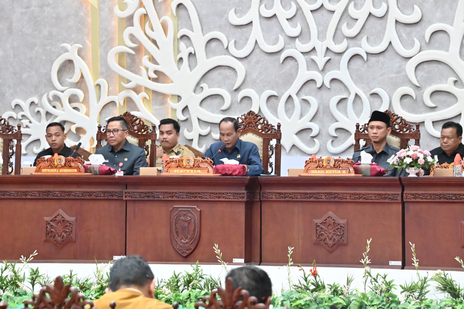 Plt. Sekda Leonard S. Ampung, mewakili Gubernur, menghadiri Rapur Ke-20 Masa Persidangan III Tahun Sidang 2025 di Ruang Rapat Paripurna DPRD Provinsi Kalteng, Selasa (19/8/2025) malam.