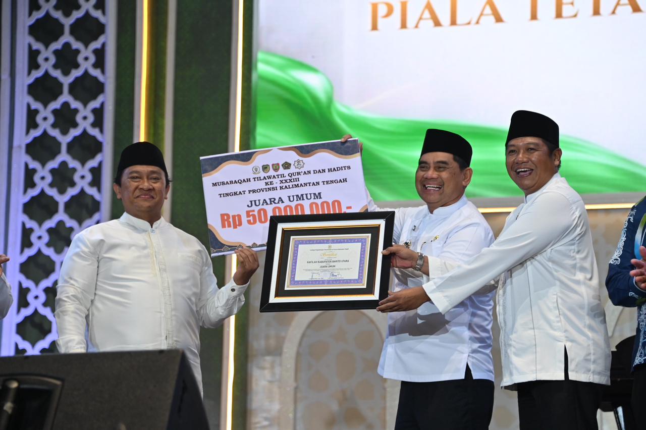 Dewan Hakim mengumumkan peserta terbaik dari seluruh cabang perlombaan. Kabupaten Barut berhasil meraih Juara Umum MTQH XXXIII Tahun 2025, disusul Kabupaten Kotawaringin Timur (Kotim) di posisi kedua, dan Kabupaten Murung Raya (Mura) di posisi ketiga. Kota Palangka Raya dinobatkan sebagai Kafilah Terbaik Pawai Taaruf, sementara Kabupaten Barut meraih predikat Stand Pameran Terbaik. Usai pengumuman, Wagub Edy Pratowo bersama Kepala Kantor Wilayah (Kakanwil) Kementerian Agama (Kemenag) Kalteng menyerahkan Piala Tetap Gubernur Kalteng kepada Bupati Barut.