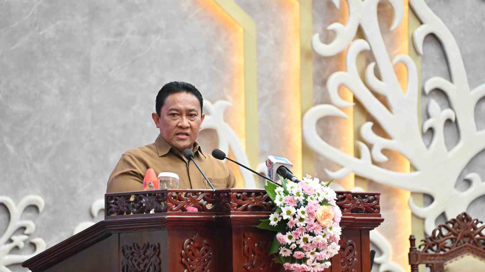 Wagub Edy Pratowo menyampaikan pidato pengantar Raperda Kalteng tentang Pertanggungjawaban Pelaksanaan APBD dalam Rapur DPRD, Selasa (3/6/2025).