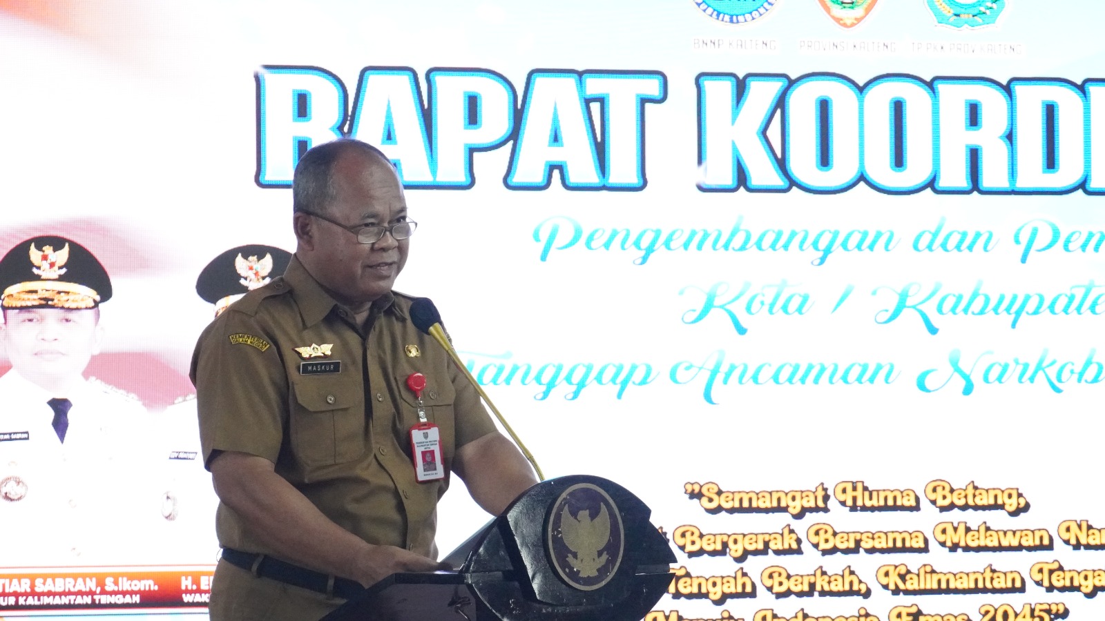PALANGKA RAYA – BIRO ADPIM. Pelaksana Tugas (Plt.) Asisten Pemerintahan dan Kesra (Pemkesra) Maskur, mewakili Gubernur Kalimantan Tengah (Kalteng) Agustiar Sabran, secara resmi membuka Rapat Koordinasi (Rakor) Pengembangan dan Pembinaan Kabupaten/Kota Tanggap Ancaman Narkoba (Kotan) di Aula Jayang Tingang, Lantai I Kantor Gubernur, Selasa (6/5/2025).